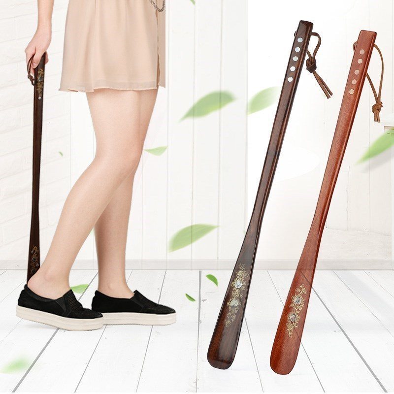 Shoe Plucking Upscale Red Wood Lift Shoes Sloth Assistive Creative Nets Red High-end Long Shank Not Bent Waist Old Man Wearing Shoes God