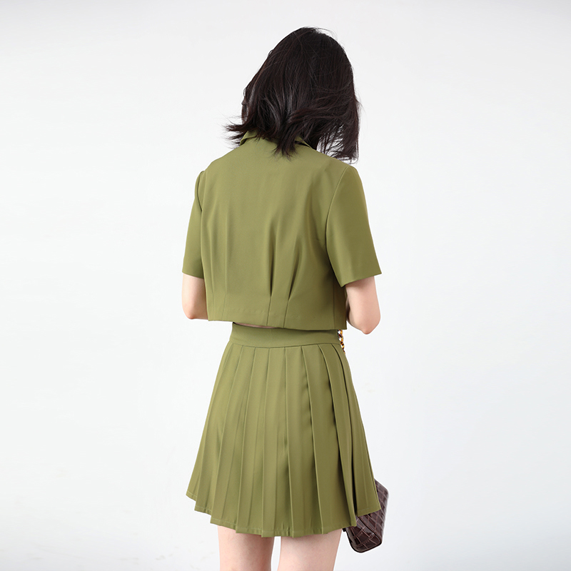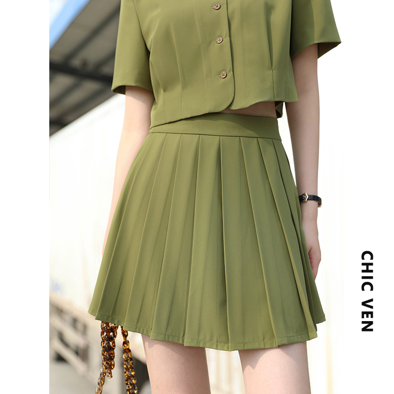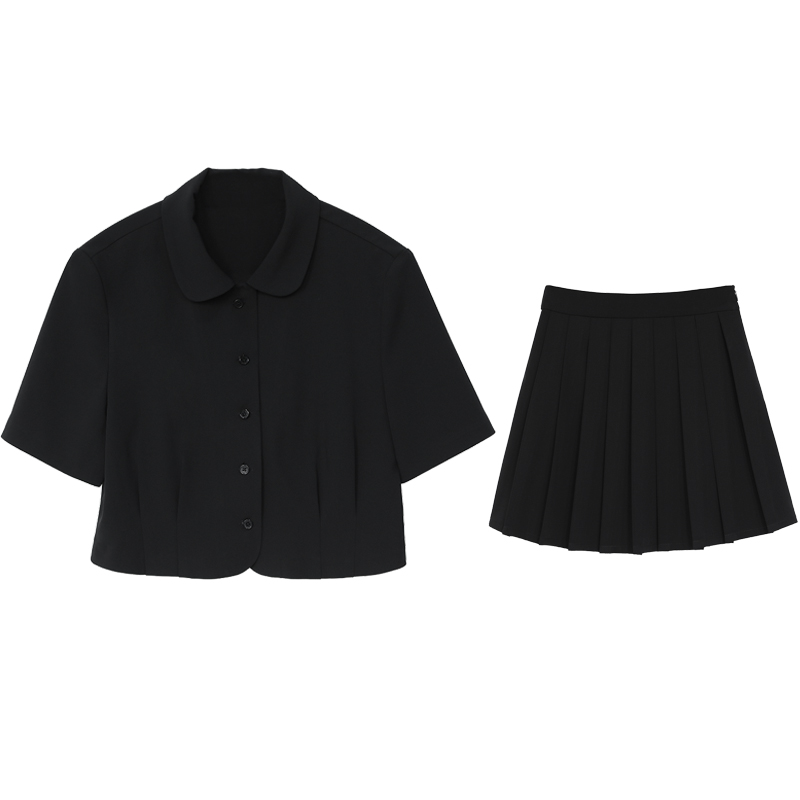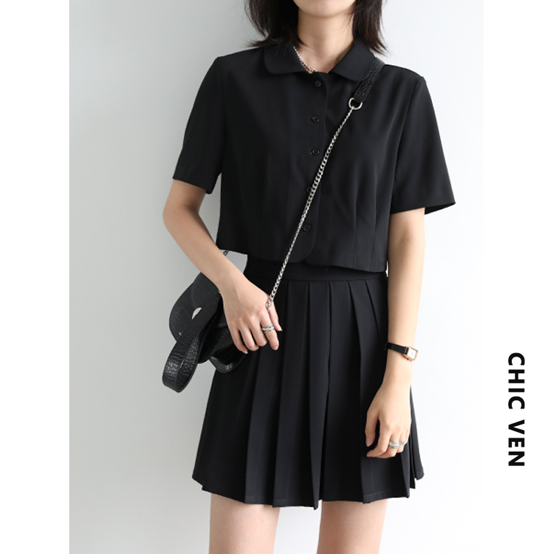 CHICVEN "Filtered Reality" Retro Age Reduction College Style Short-sleeved Shirt Pleated Skirt Suit Women's Summer