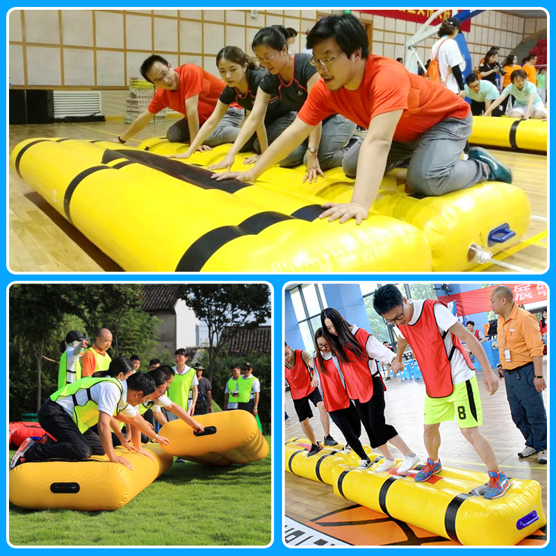 Fun Games props inflatable and a bamboo raft bridge over river dryland dragon boat group to build and expand equipment