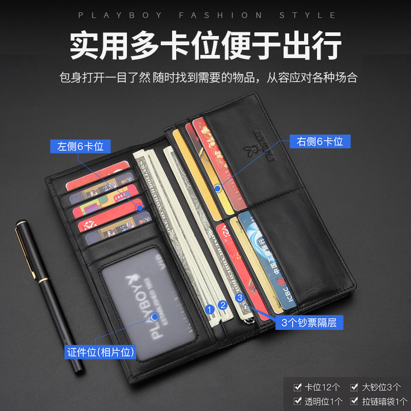 Playboy men's wallet 2022 new long version leather wallet large capacity soft wallet tide brand wallet