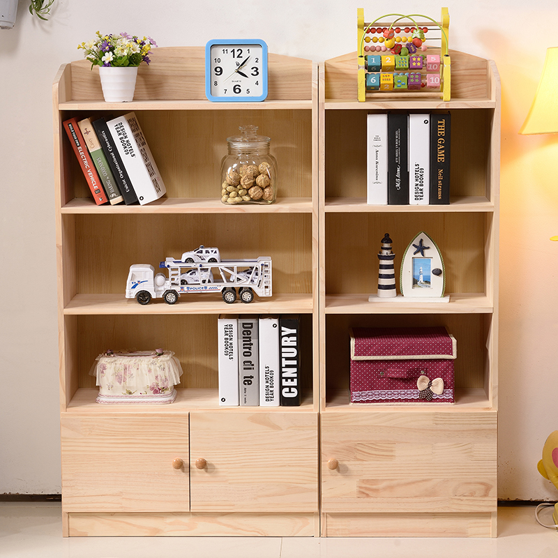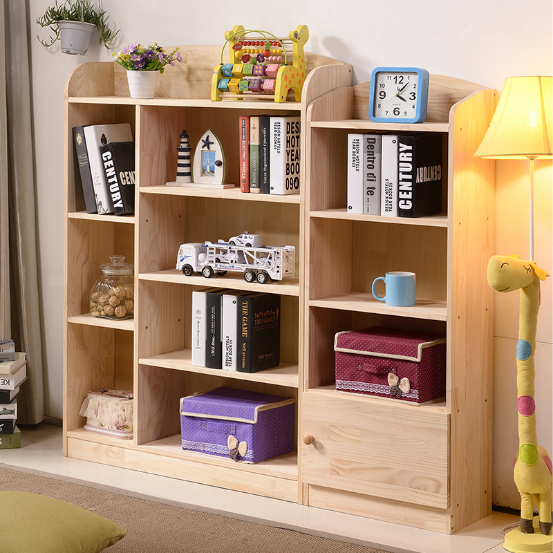 Pine Wood Bookshelf Full Solid Wood Floor Shelve Shelf Economy Type Children Intake Cabinet Elementary School Students Provincial Space Minimalist Bookcase