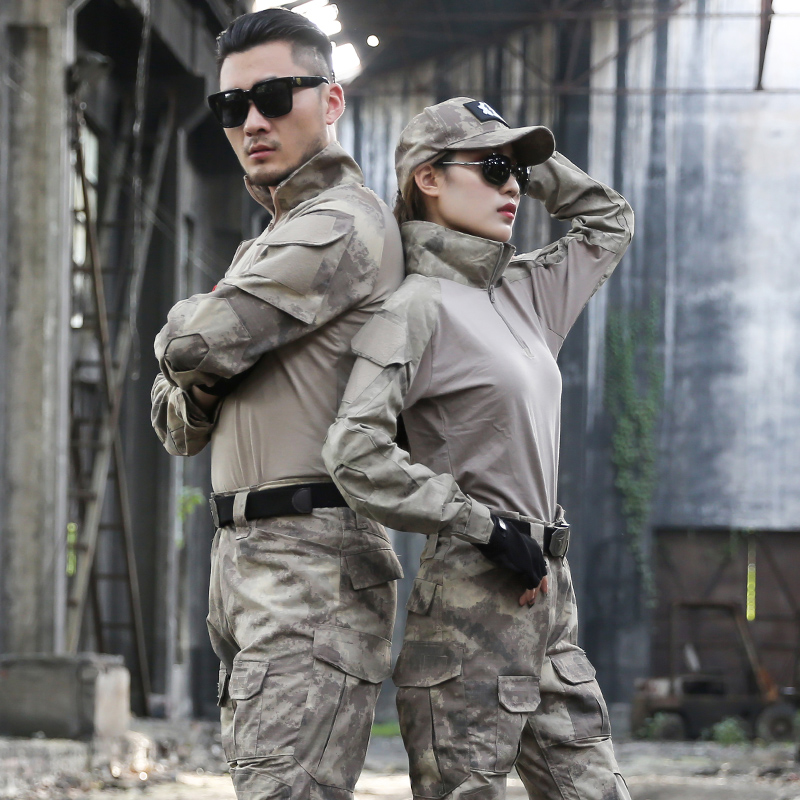 Outdoor short-sleeved camouflage suit men's spring and summer black python pattern frog suit tactical suit wear-resistant long-sleeved military training suit women