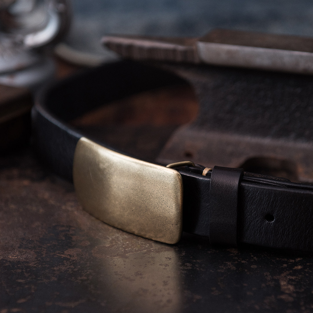 Mountain rock hand made 3 3cm wide retro brass plate buckle leather strap imported 5mm thick plant tannic leather Vintage wearing lap