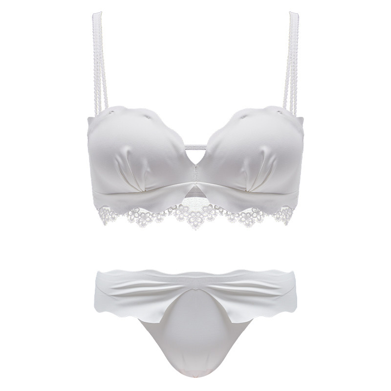 White half cup underwear girl girl small corset gathered thin 2021 sex confusion no rim bra cover set summer