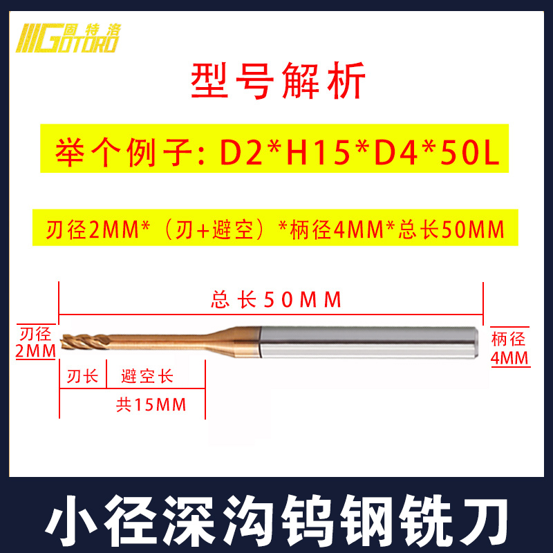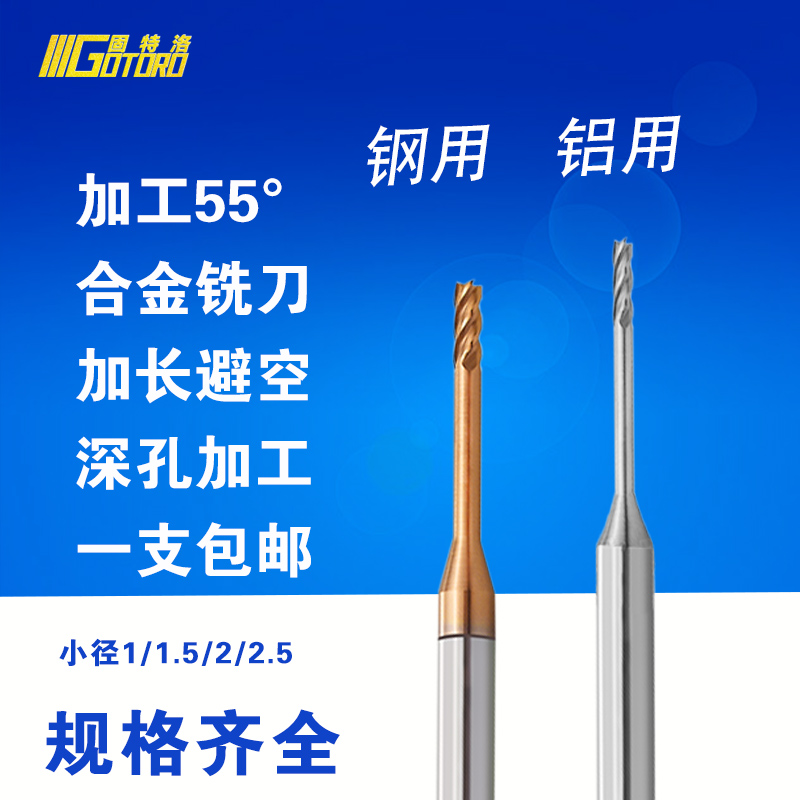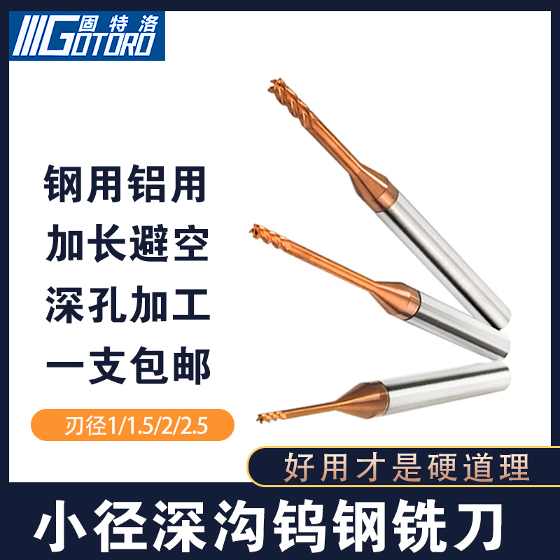 Tungsten steel deep groove milling cutter lends and avoids empty flat bottom aluminum steel small diameter alloy milling cutter 4-edge 1 2 5 non-standard customization