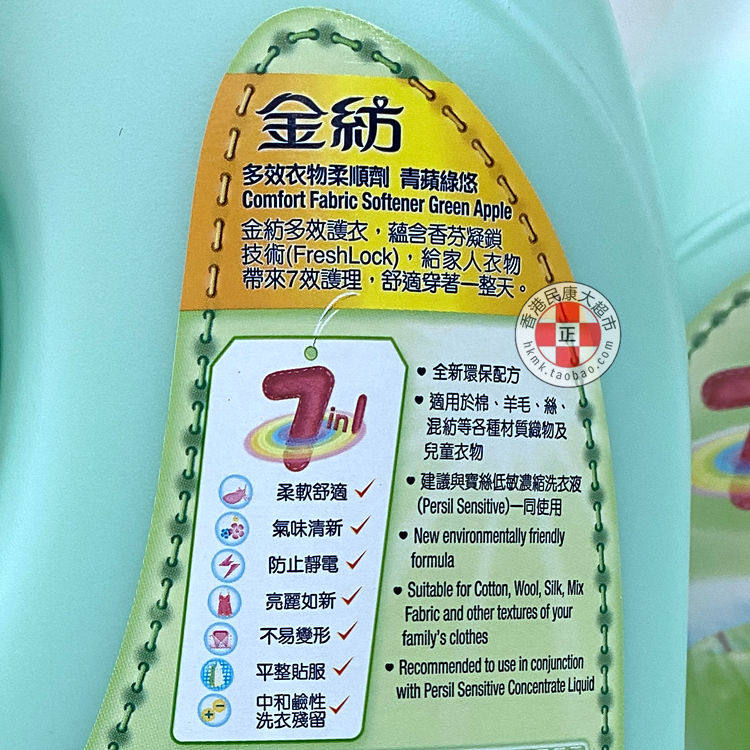 (triple crown) Hong Kong version gold spinning clothing softener 7in1 green apple green 3L soft and fragrant