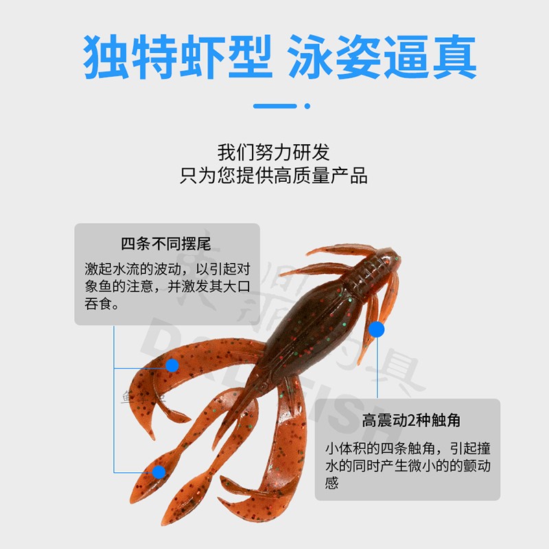 Dongding Xiaoyao shrimp floating shrimp fake bait Luya black pit fishing Texas bass mandarin fish bait soft shrimp soft bait soft worm