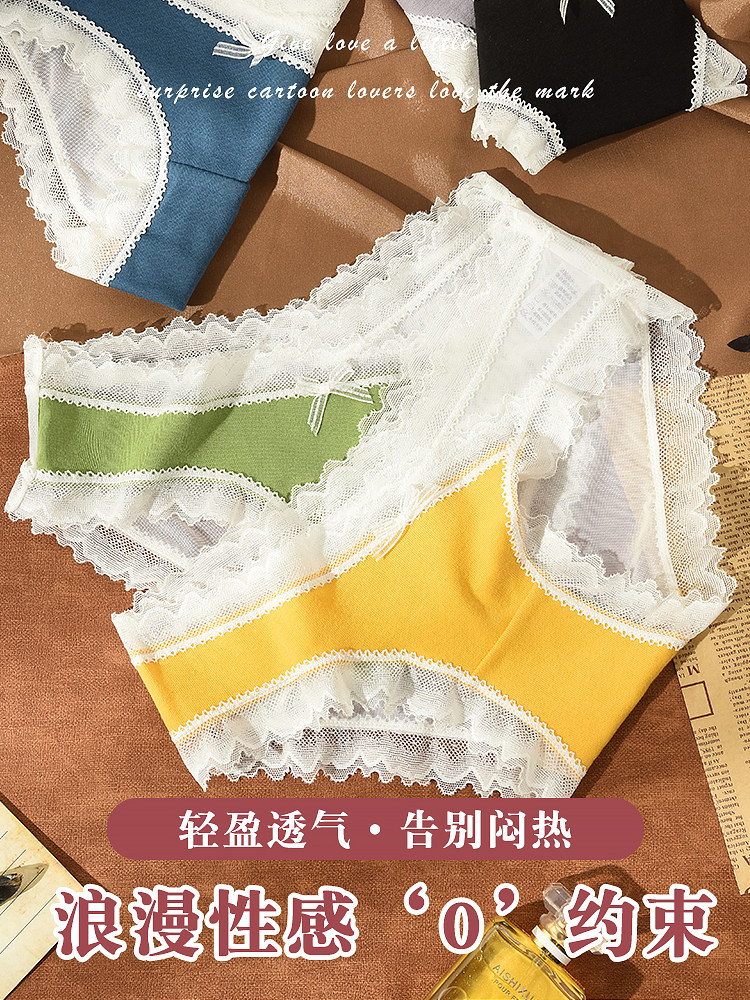 Lady Briefs Women Pure Cotton Sexy Seductive Teenage Girls Raw Triangle Pants Head Day Department Breathable Lace Side Comfort Antibacterial Crotch