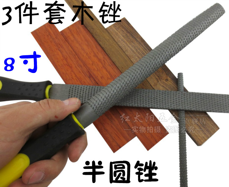 8 inch fine woodworking file three-piece set of files wood file round semi-circular flat file wood file coarse teeth