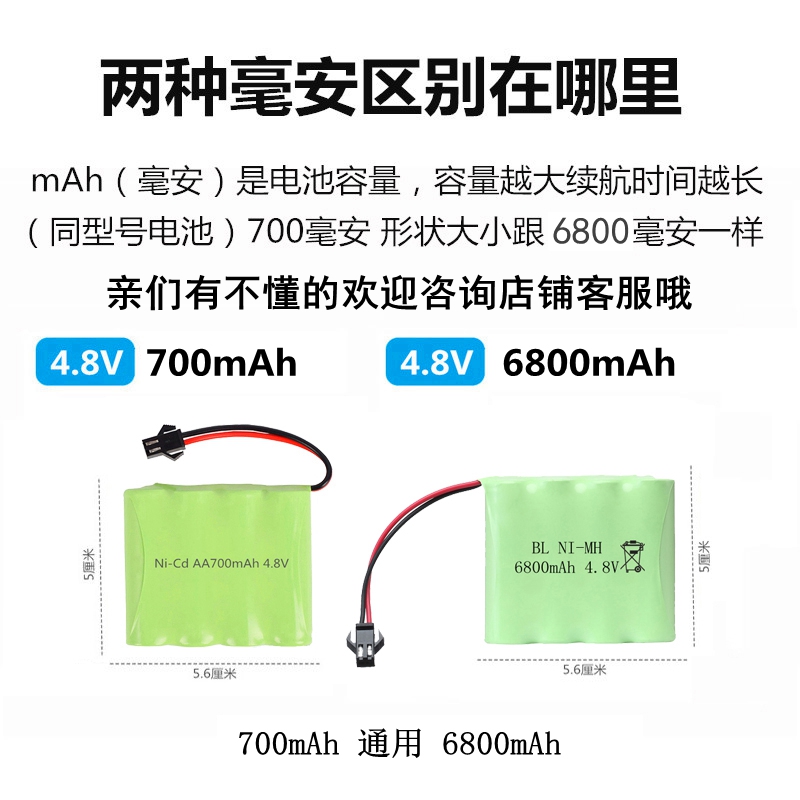Large capacity No. 5 toy off-road remote control car rechargeable battery pack 4 8v3 6V7 2v8 4v9 6V6800mah
