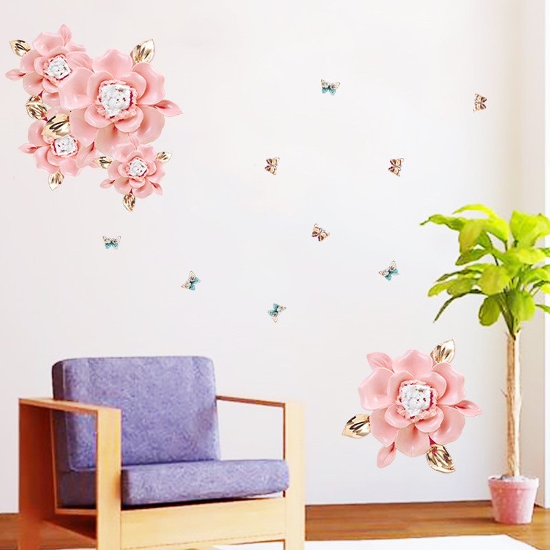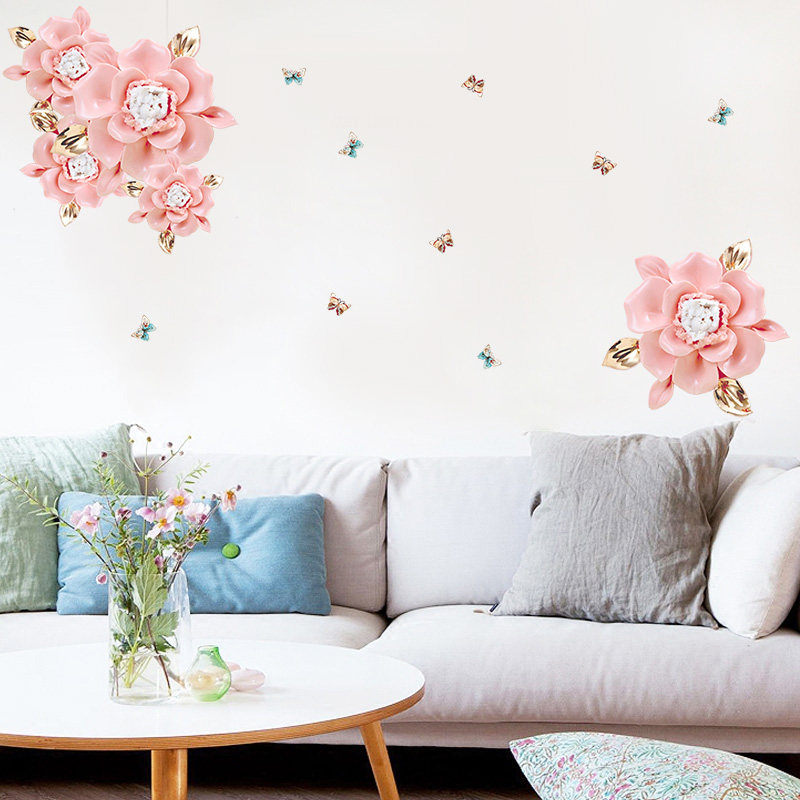 Minimalist Romantic Light Lavish Flowers Living-room Sofa TV Background Wall Sticker Cozy Bedroom Headboard Wall Deco