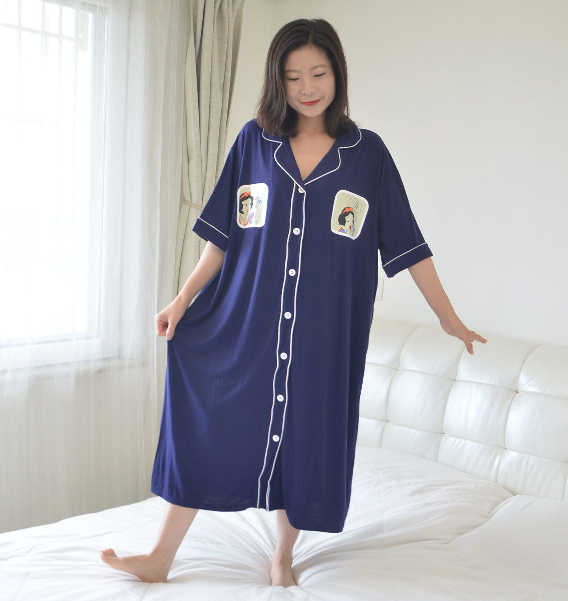 200 Catty Size Princess Sleeping Dress Woman Summer Short Sleeve Lengthened Modale Cardiovert Kfat MM Pregnant Woman Pyjamas