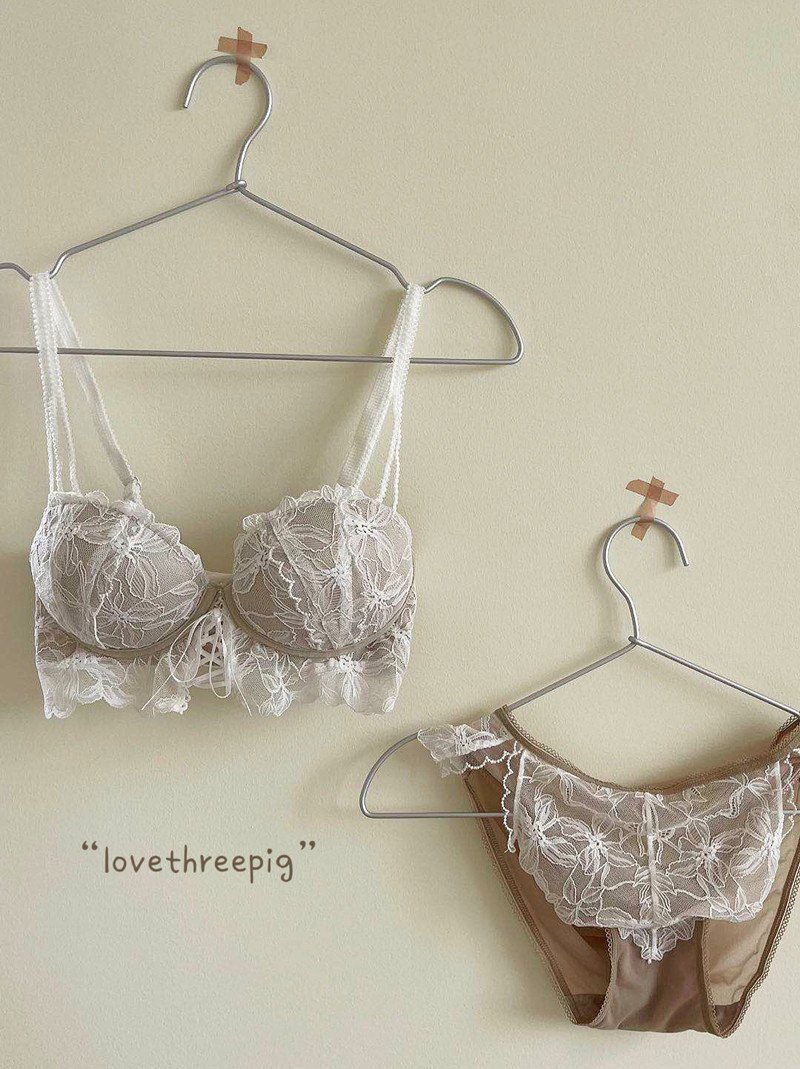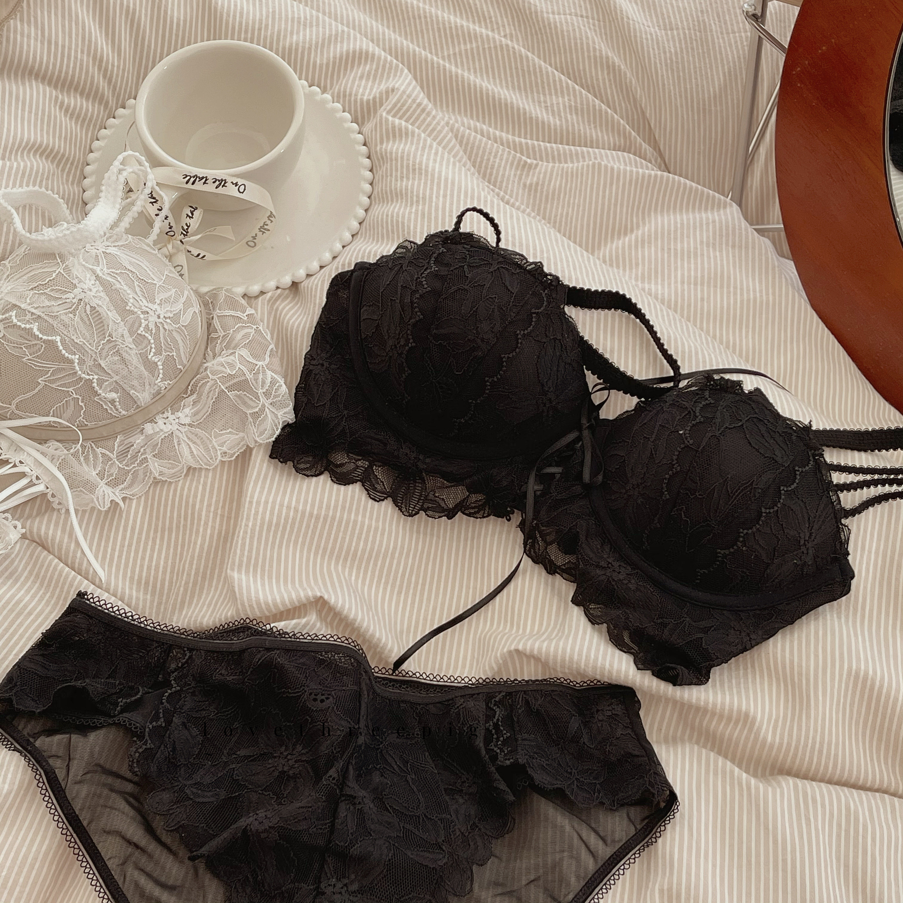 THREEPIG Japanese girlless underwire-less straps on thin thick straps to support the lace lingerie set