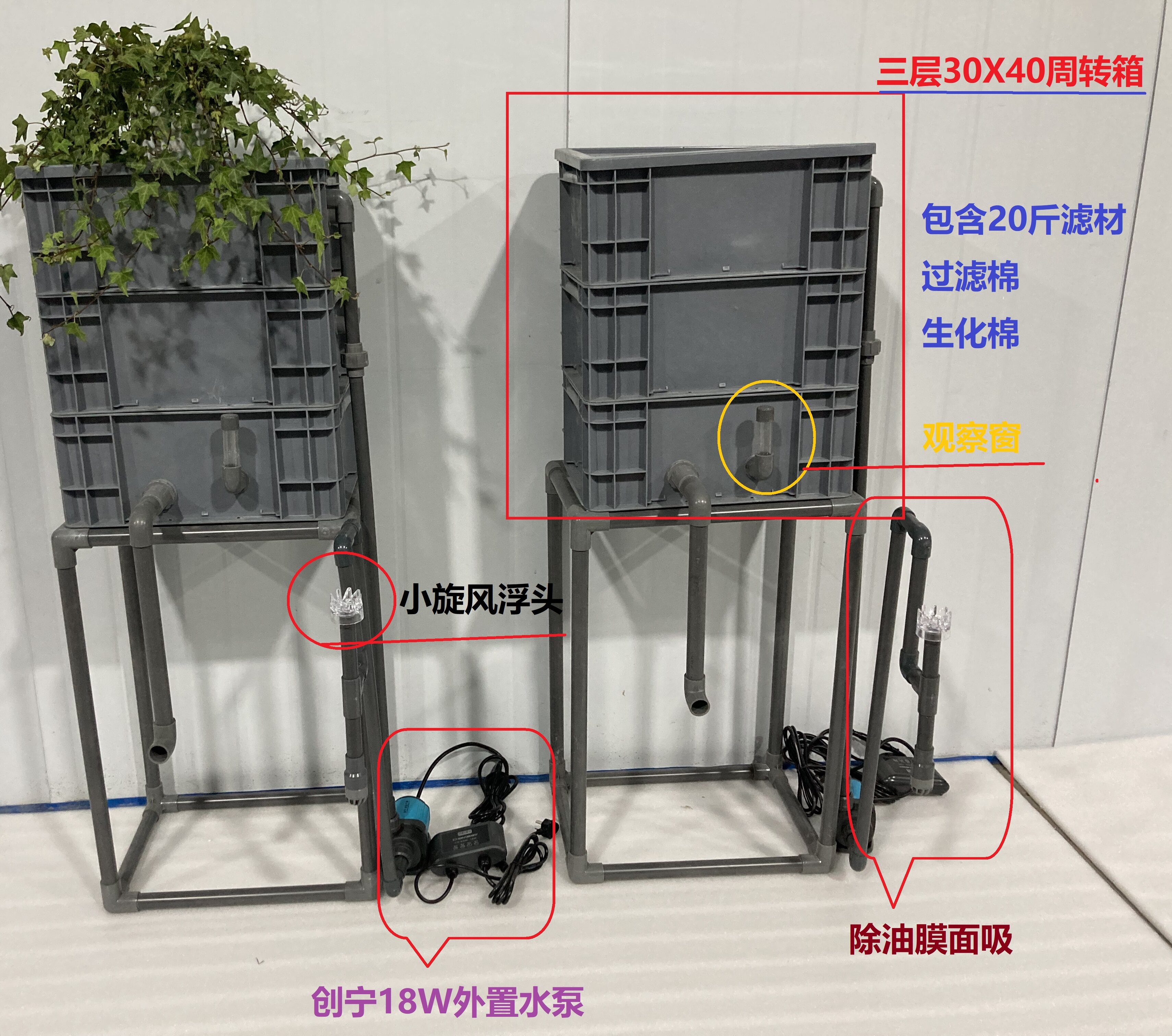 Small filter set (length 30 width 20 height 35) large filter set (length 40 width 30 height 50) This is the filter does not include fish tank 80 diameter tiger head fish tank 70 diameter tiger head fish