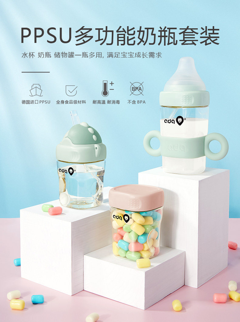 Educational square square pacifier PPSU bottle dust cover straw handle accessories wide diameter baby hot sales