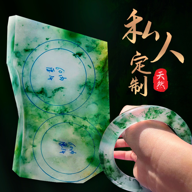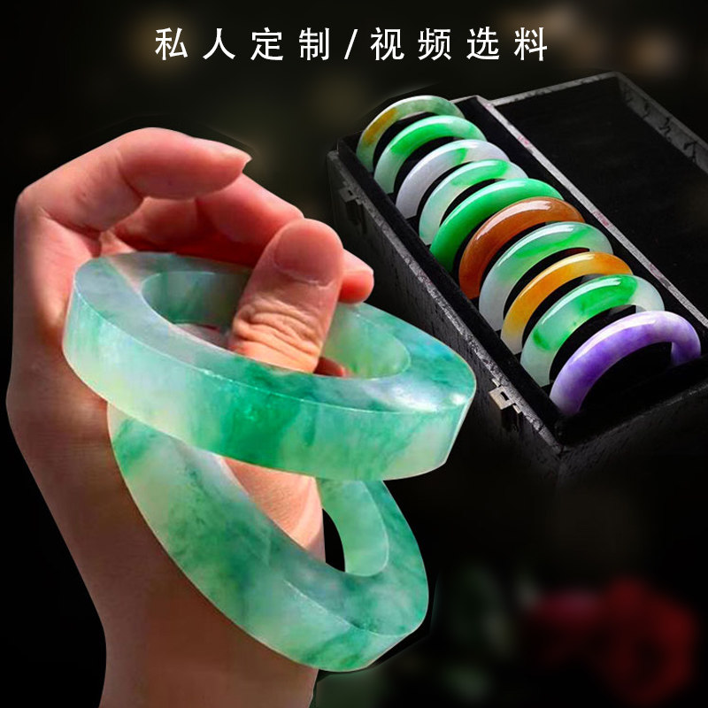 Burmese jadeite rough jade bracelet semi-clear material natural jade ice seed floating flower yang green violet sheet material customization