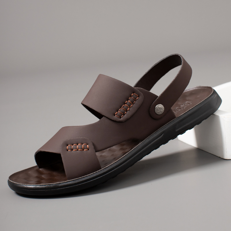 Sandals men's 2021 new genuine leather casual beach shoes men's trends Summer outwear driving soft-bottom sandals Shoe men