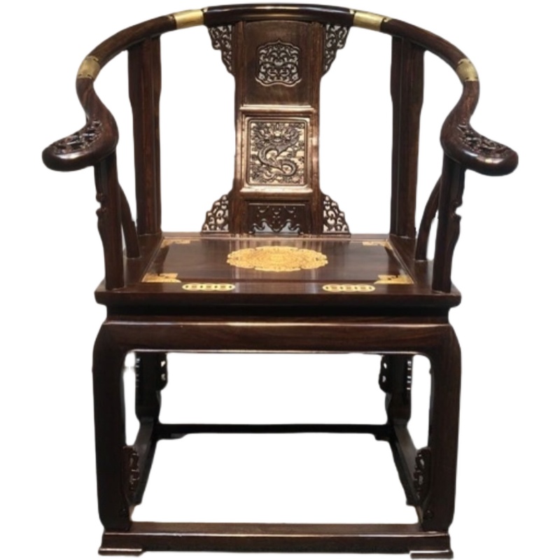 Ebony mahogany furniture palace chair three-piece home leisure solid wood Chinese backrest antique emperor Taishi circle chair