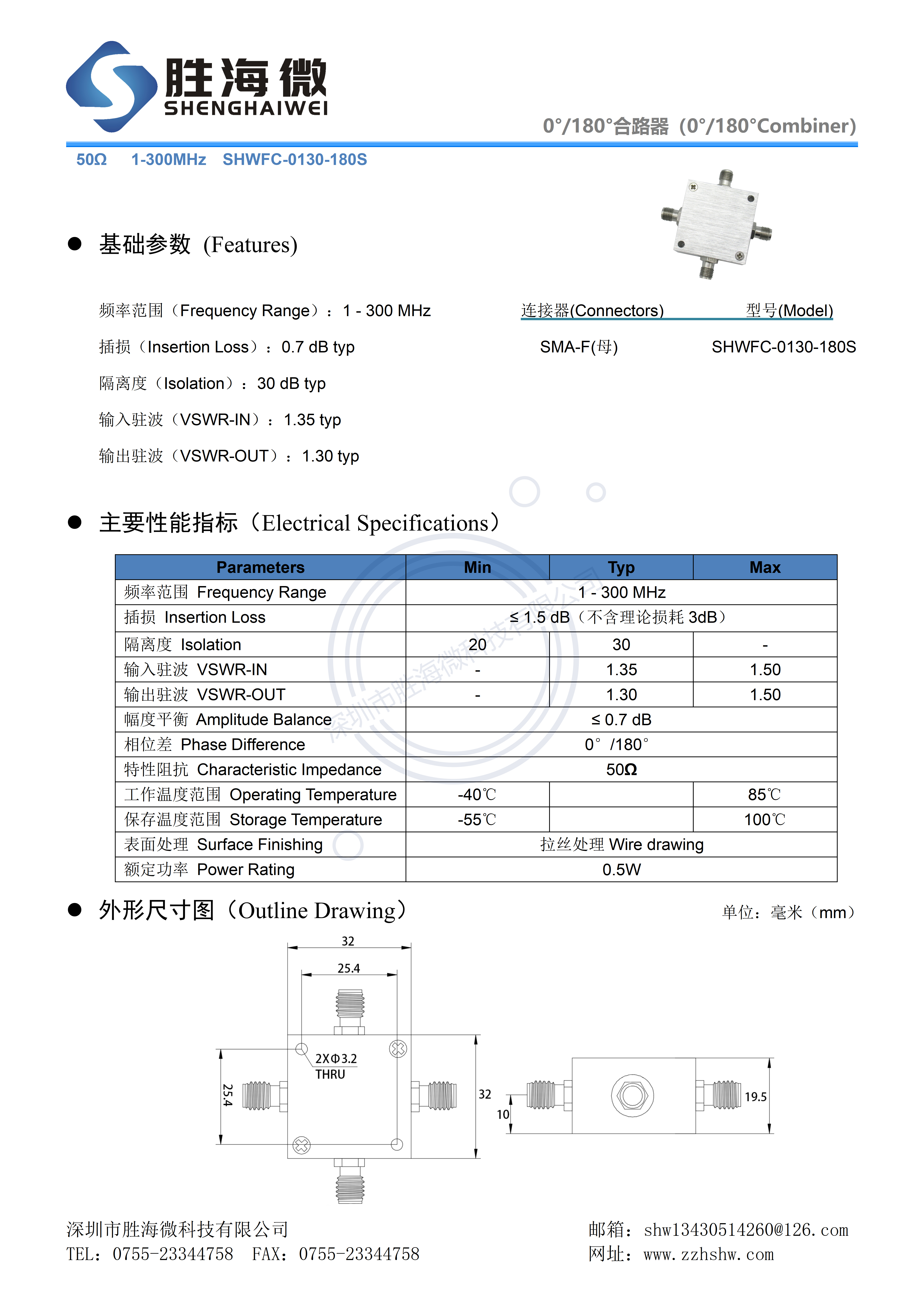 SHWFC-0130-180S SHWFC-0130-180S 1-300MHz SMA Radio Frequency Broadband 180-degree two-in-one mixer