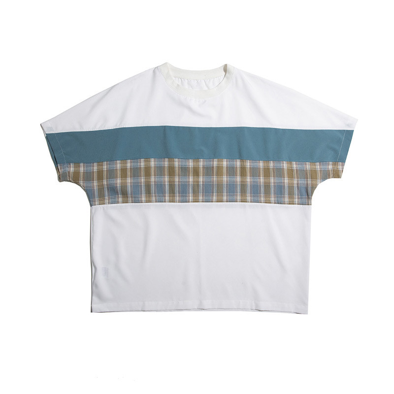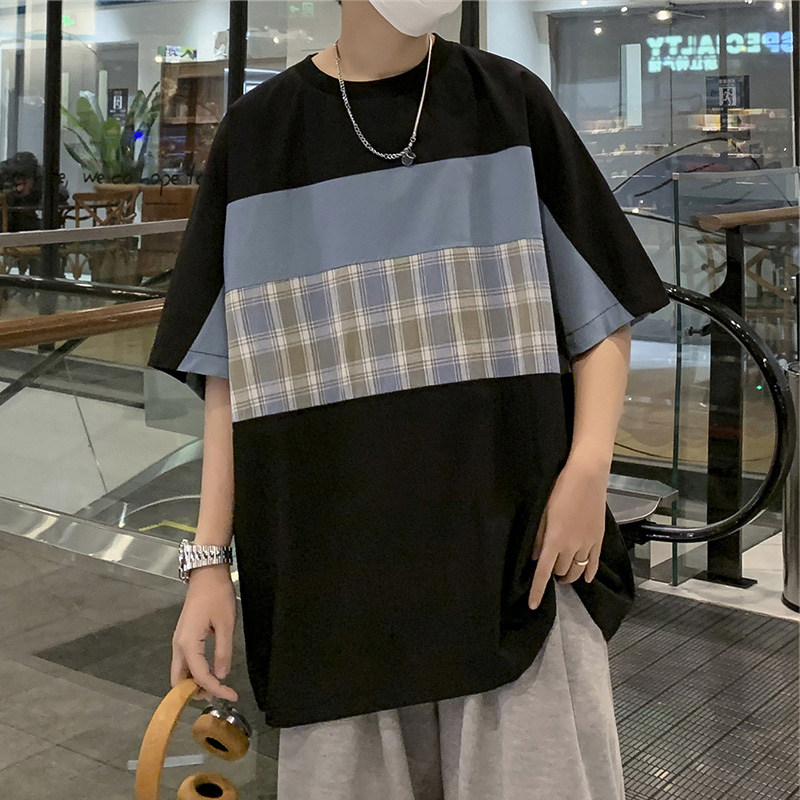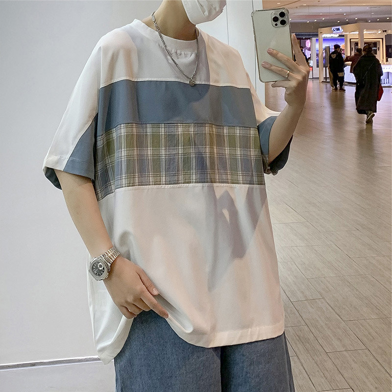 Summer Splicing Short Sleeve Men Ins 100 Lapped Loose Port Wind T-shirt Han Version Trend Original Juku 50% Sleeve Round Collar Half Sleeve