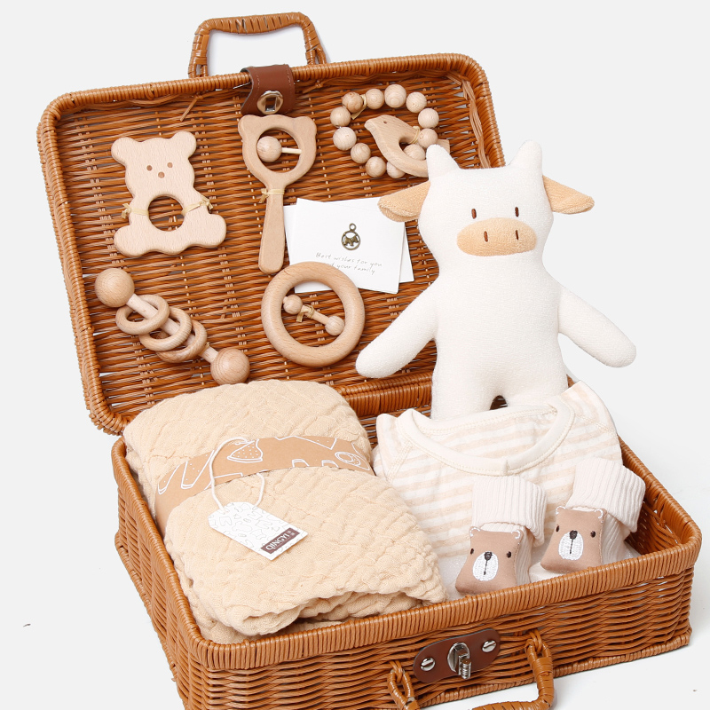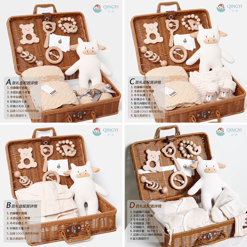 Baby Gift Wood Toy Gift Box Newborn Full Moon Gift Pure Cotton Bath Towels Clothing 1st Year Hand Big Gift Bag