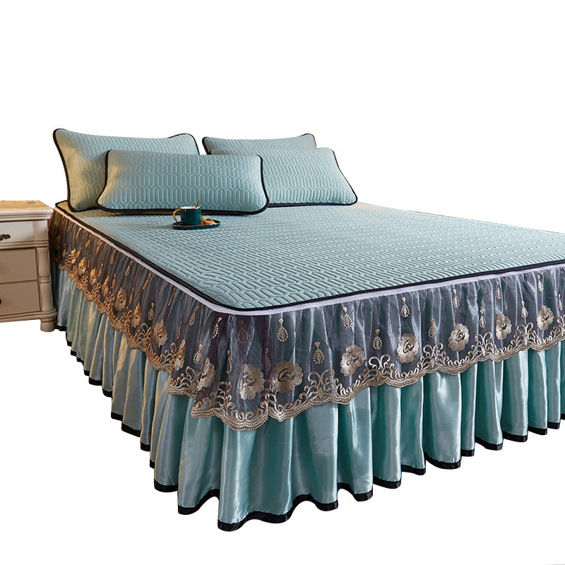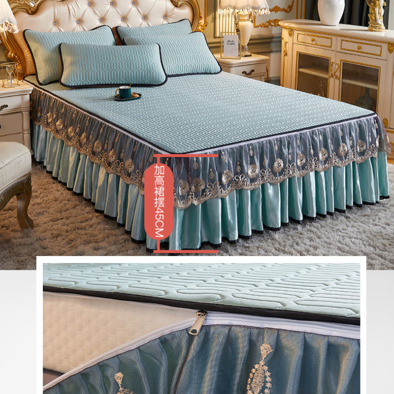 2022 New Thai Latex Cool Mat Summer Ice Silk Air Conditioning Soft Mat bed skirt with three sets of machine washable mattress
