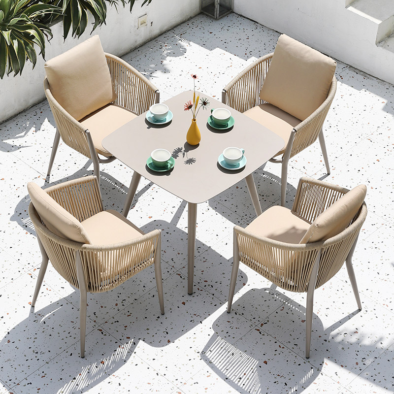 Outdoor table and chair courtyard open-air plastic wood slate dining table outdoor rattan balcony leisure hotel villa garden rattan chair