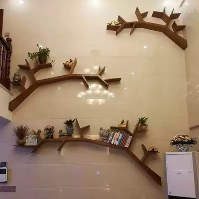 Simple solid wood creative tree wall hanging bookshelf living room background wall TV rear wall hanging shelf office living room