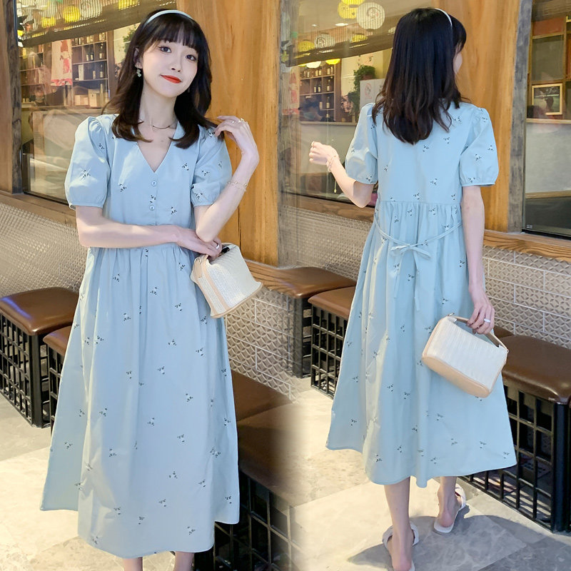 Pregnancy Woman Dress Summer Fashion Blouse Summer Fashion Embroidery Over Knee Loose Pregnant Woman Foreign Dress Long Dress Summer Pregnant Woman Skirt