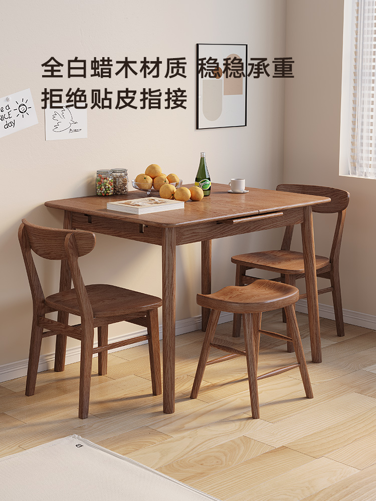 Ash wood dining table and chair combination all solid wood retractable dining table Nordic modern household small-sized foldable dining table
