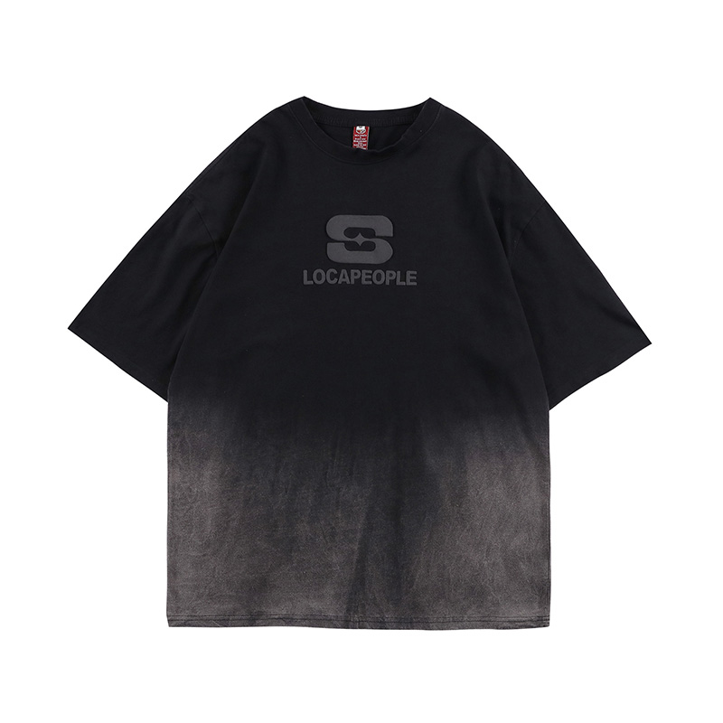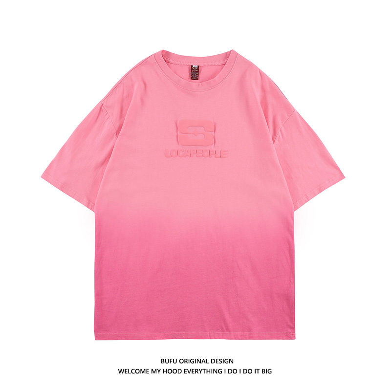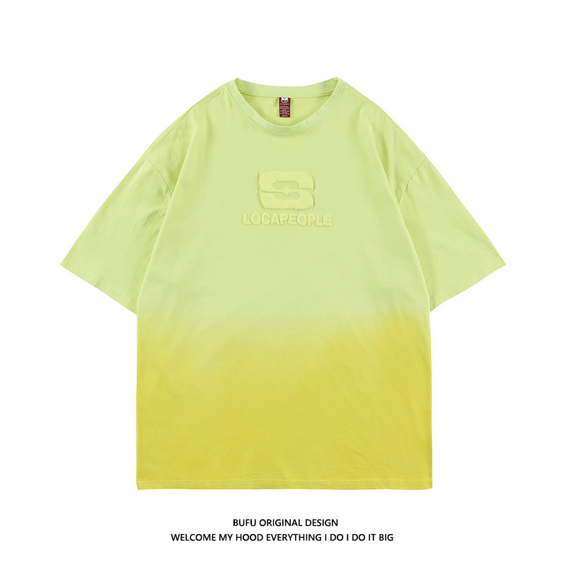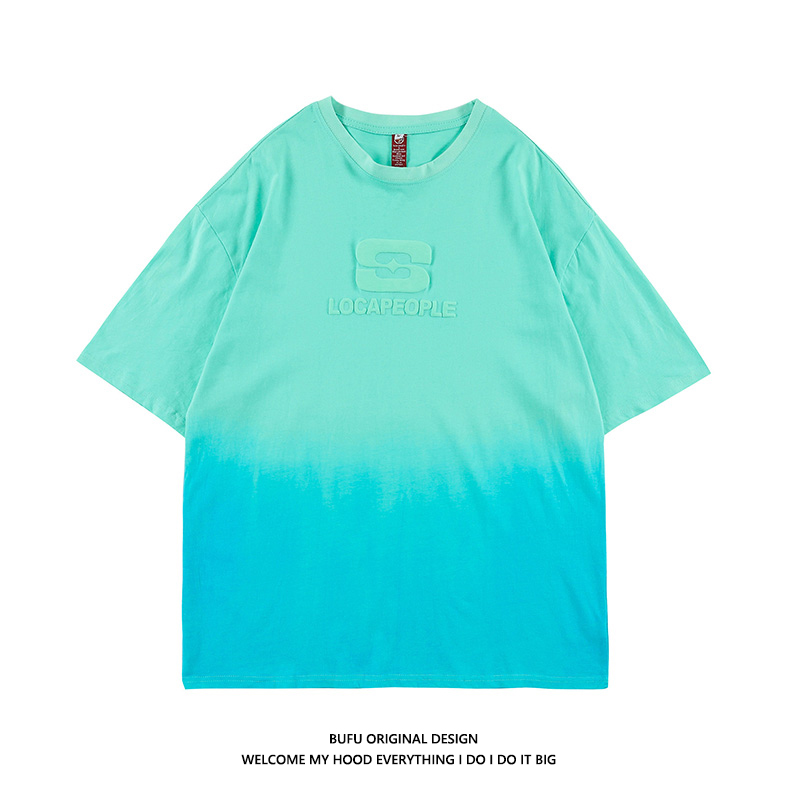 hundreds of millions juvenile national tide card gradient sparkling printed short sleeve T-shirt male couple zdyeing loose hip hop small crowdsleeve half sleeve