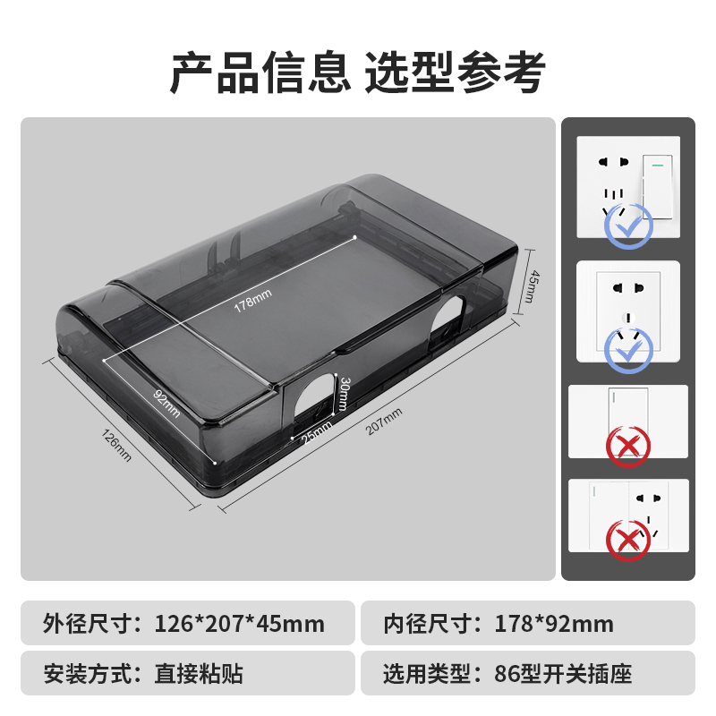 Double 86 socket switch double - digit two - digit waterproof box switch cover and cloth protection