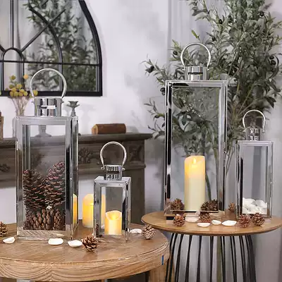 Nordic light luxury soft dining table candle holder ornaments stainless steel INS windproof outdoor windproof light wedding road kerosene lamp