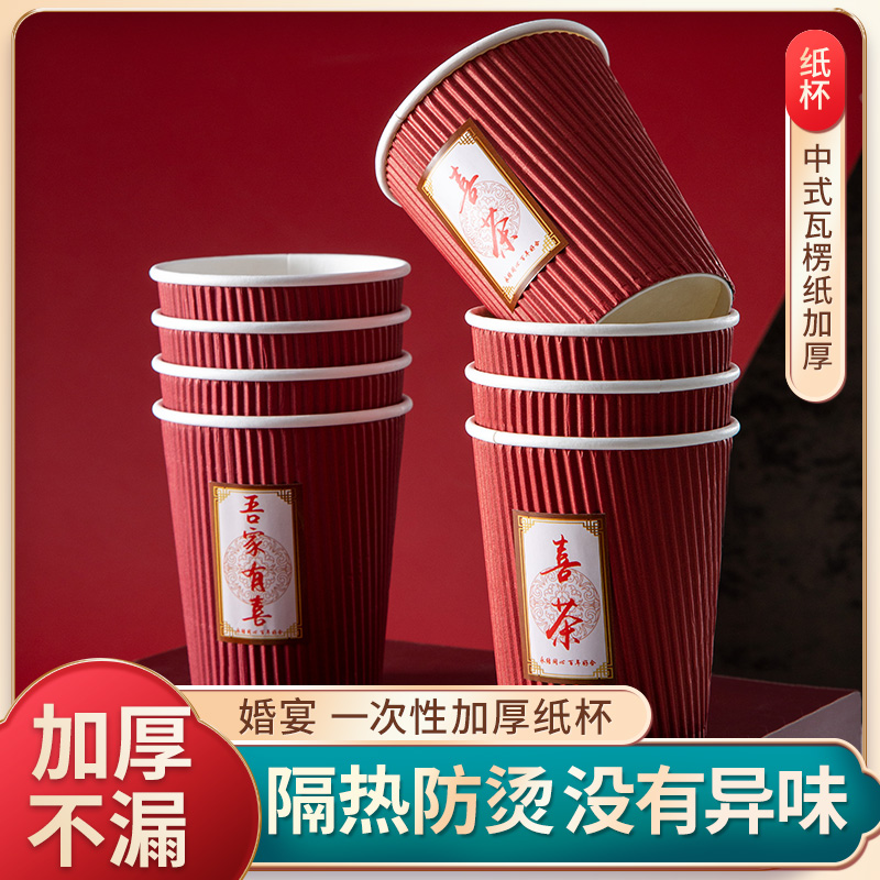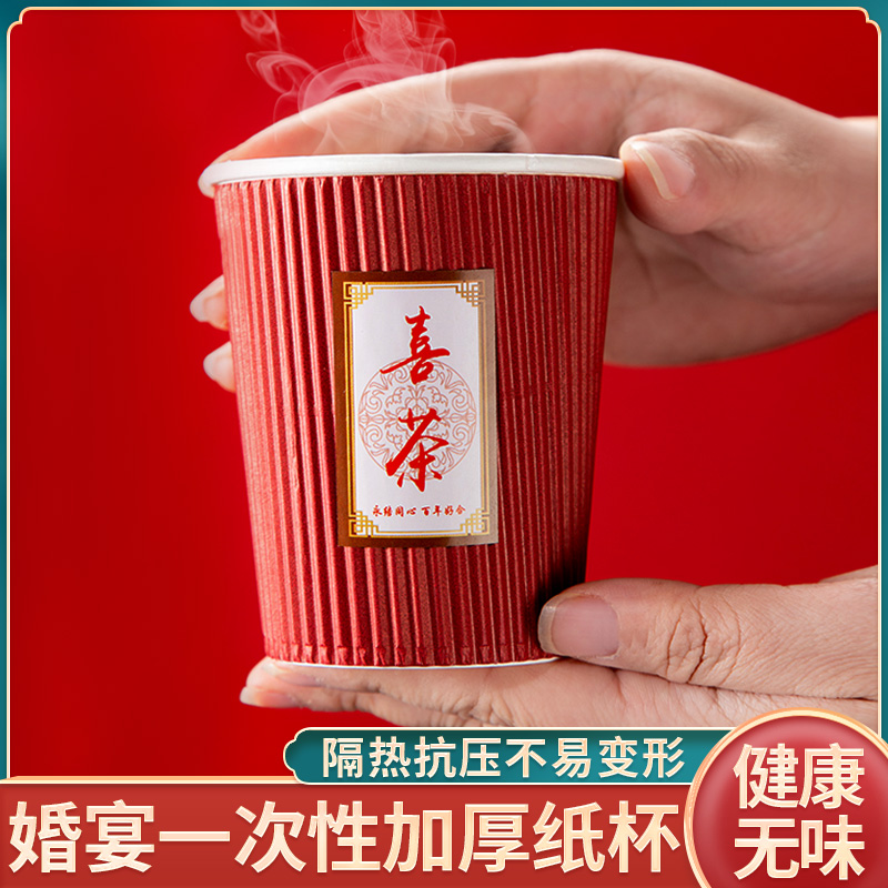 Thickened wedding and festive wedding banquet with wedding disposable paper cup 250 ml 500 toast tea big red cup