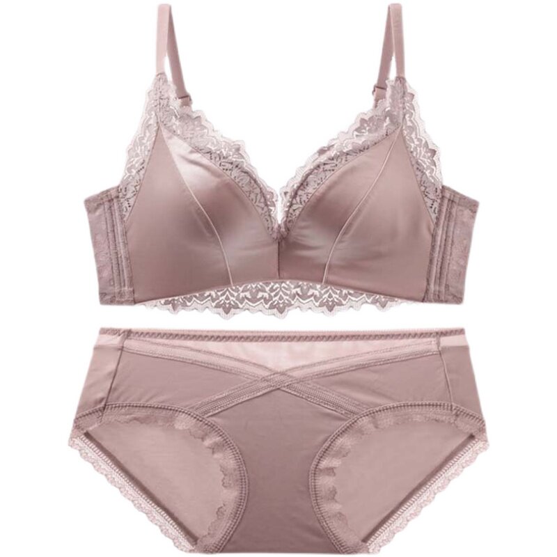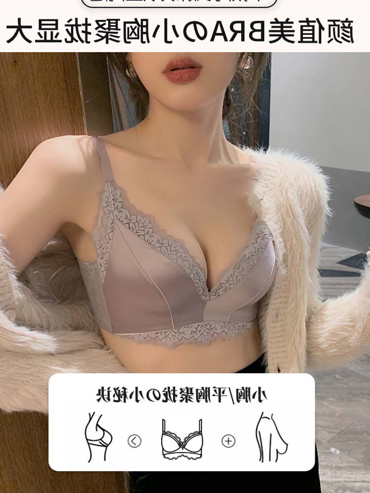 Seamless underwear women's small breasts gathered to collect the auxiliary breasts to prevent sagging without steel ring bra lace adjustment underwear set