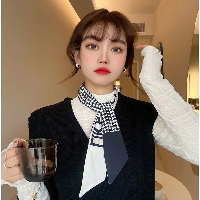 South Korean silk scarf hair with women's fashion silk with binding hair mesh red ponytail hair rope sweet and beautiful head decoration floating with hair accessories