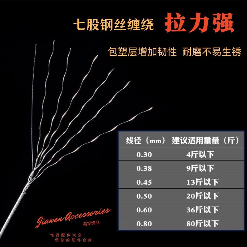 Rubber-covered jewelry steel wire, beaded soft steel wire, lead wire, three-way beaded rope, curtain wire, strong tension, plastic-coated