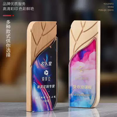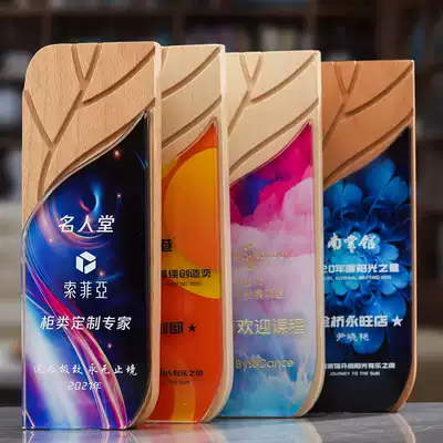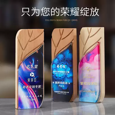 Solid Wood head creative trophy custom medals custom wooden Crystal lettering honor team staff Annual Awards