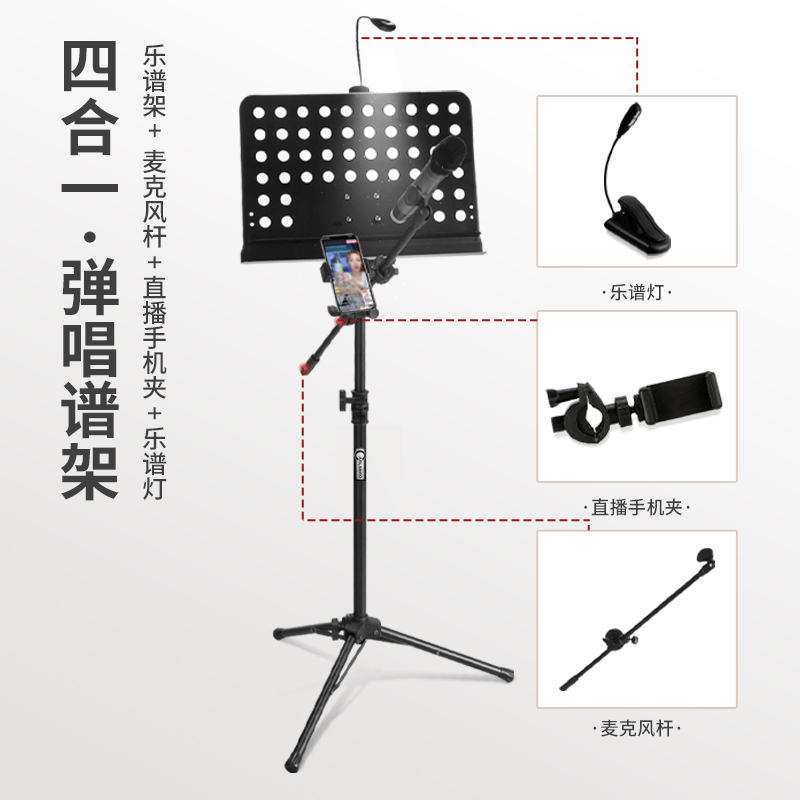Music stand Music stand Microphone crossbar Music stand Storage bag Music stand Microphone crossbar Live phone clip Music stand Microphone crossbar Live phone clip Music score light