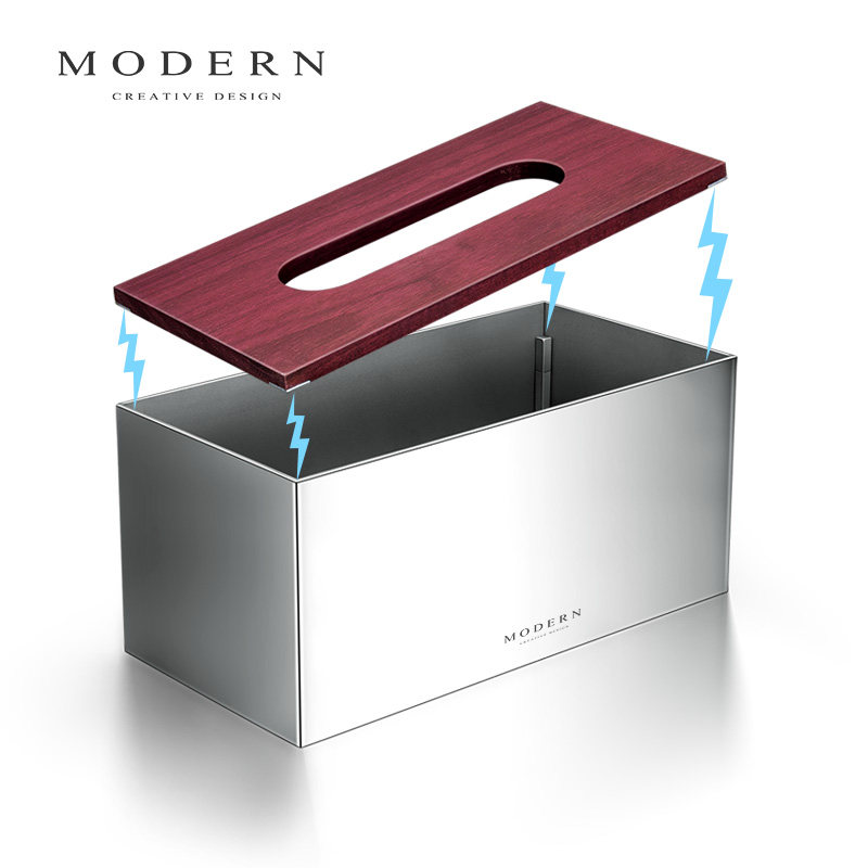 German MODERN Stainless Steel Tissue Box Upscale Light Lavish Toilet Paper Box Living-room Light Lavish Board Room Soft-mounted Hem