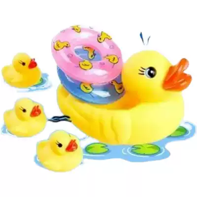 Playing with the little yellow duck pinch called children's flat-billed little yellow duck swimming baby bath toy decompression mother duck