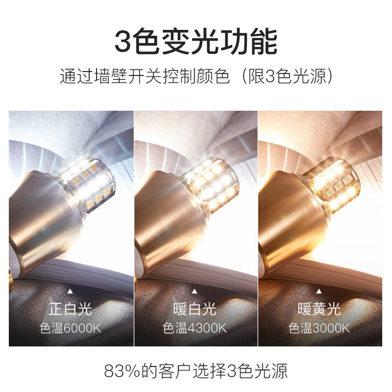 Moon Shadow 3 Color LED bulb e14 screw mouth e27 energy-saving lamp home super bright g9 intelligent light source lighting small bulb