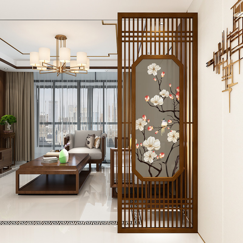 New Chinese style screen partition living room porch solid wood craft bedroom entrance to block modern minimalist decorative fence
