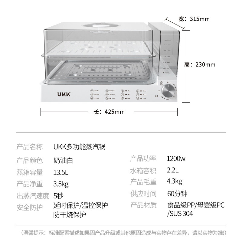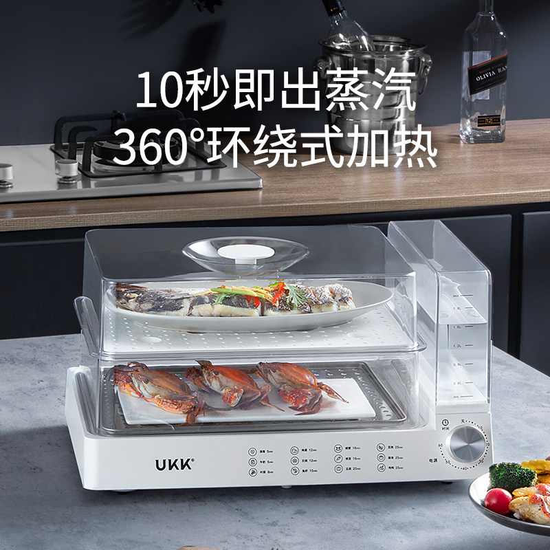 UKK German electric steam cooker household multi-function large-capacity steam cage transparent double-layer rectangular folding steam tank three layers