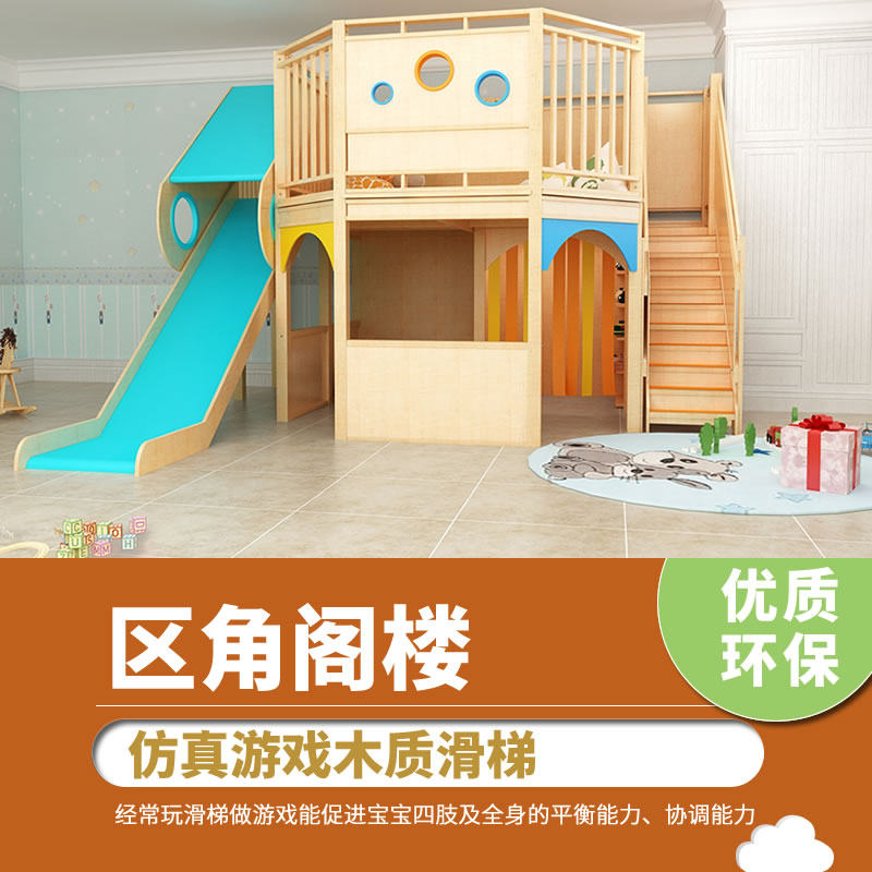 Early education Center Wooden slide Corner loft Children's play house Kindergarten Sensory integration training Climbing drilling combination