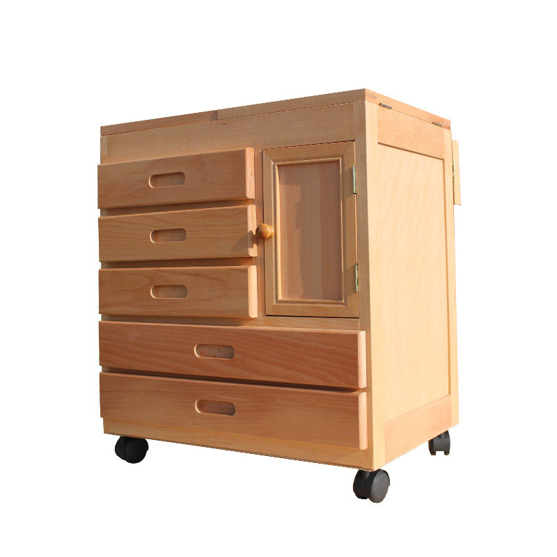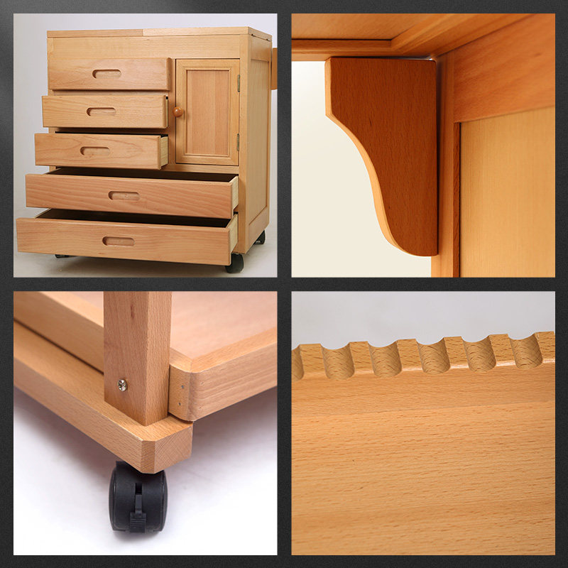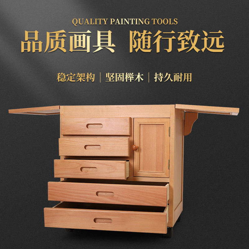 Beech oil painting cart three layers of student desk with drawer storage fine art collection toolbox with wheel beech wooden painting car frame painting large multi-function