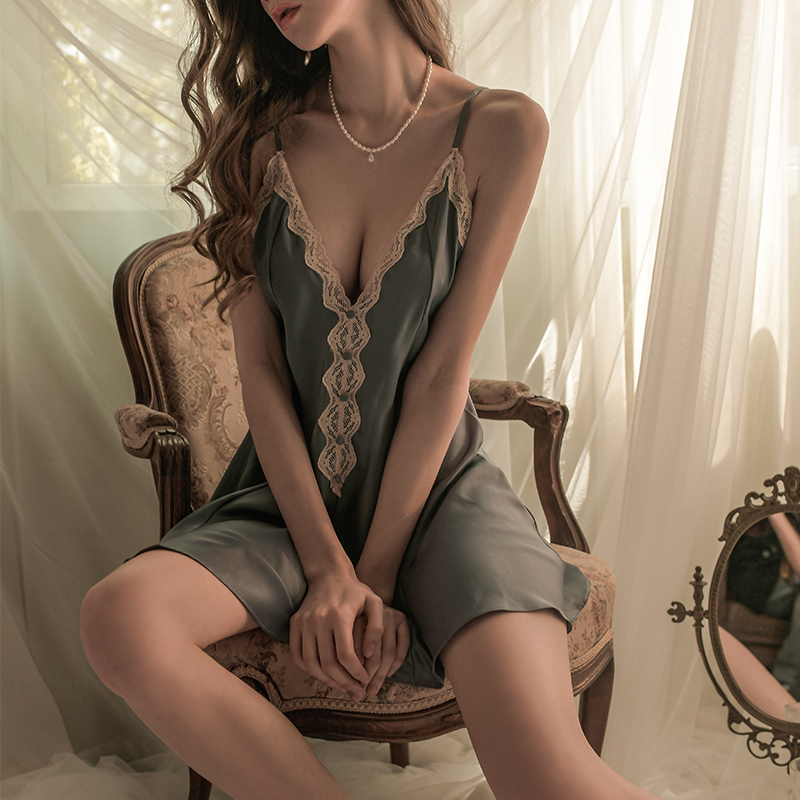 Upper Small Building Sexy Sleepwear Women's Summer Ice Silk Thin Section 2021 New Pure Desire Lace Dorsal Harness Sleeping Dress