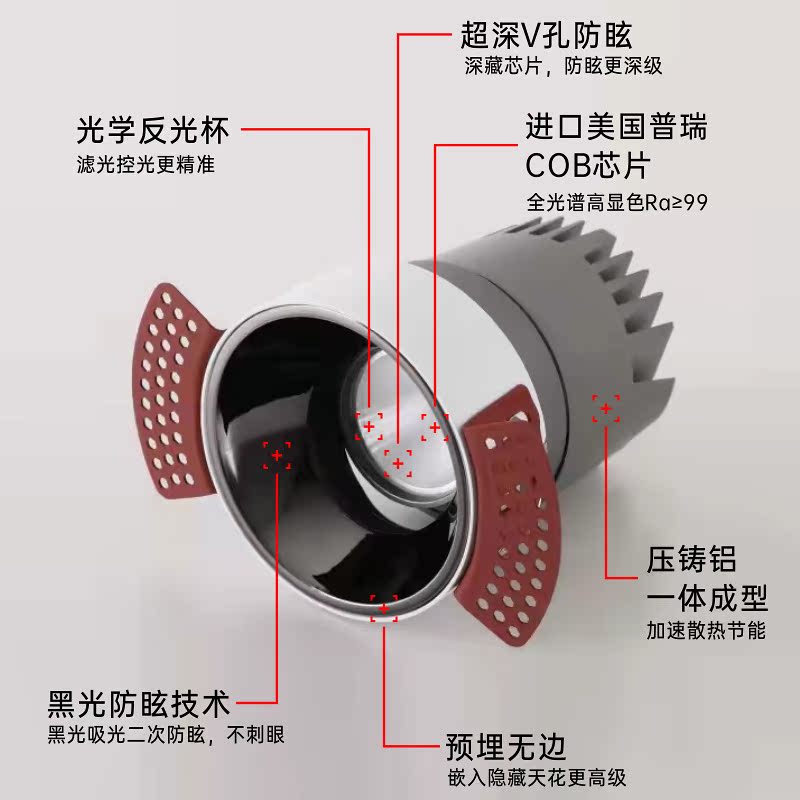 Frameless spotlight embedded black light deep anti-glare led high display refers to the living room home wall washer lamp can not see the lamp design