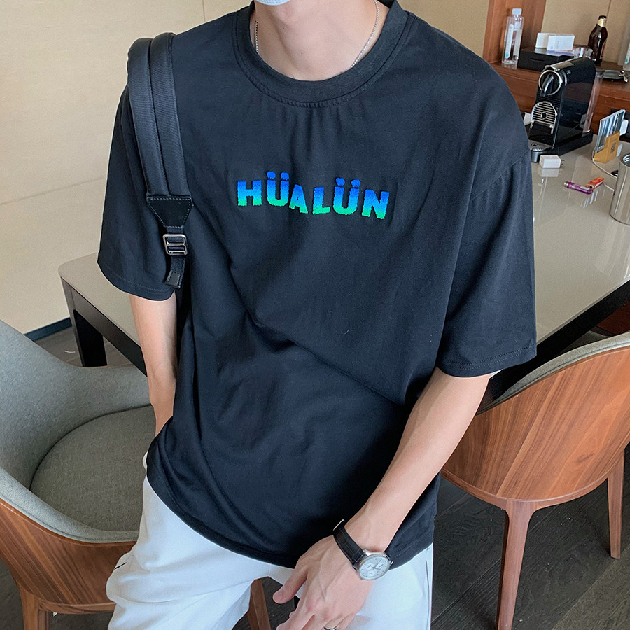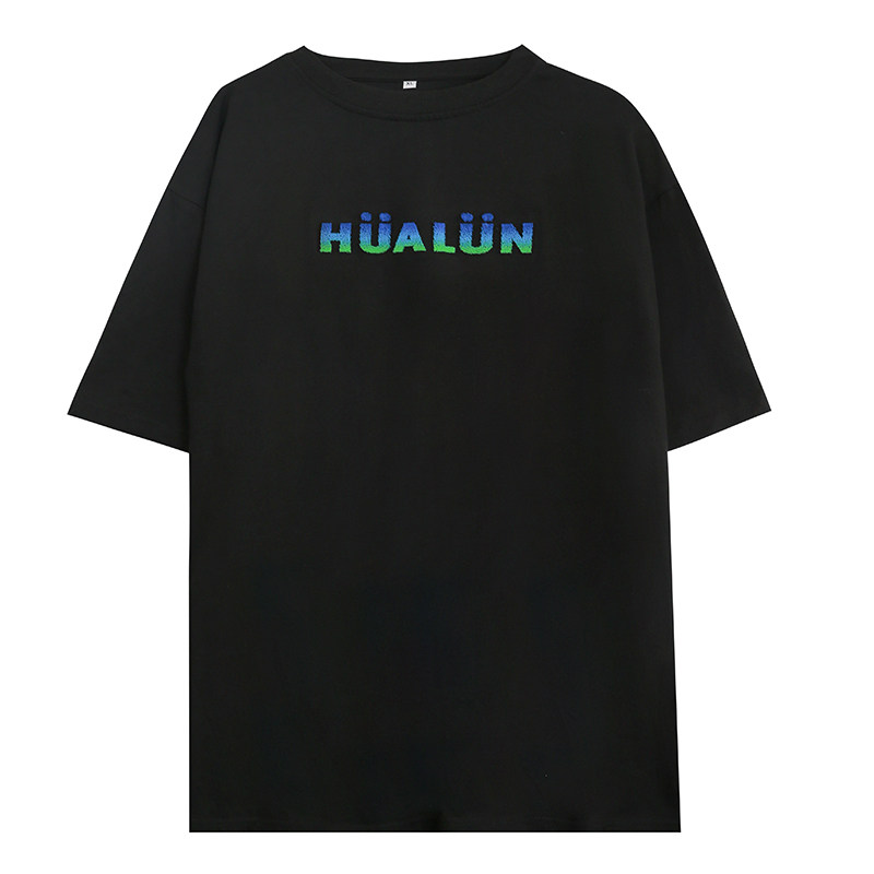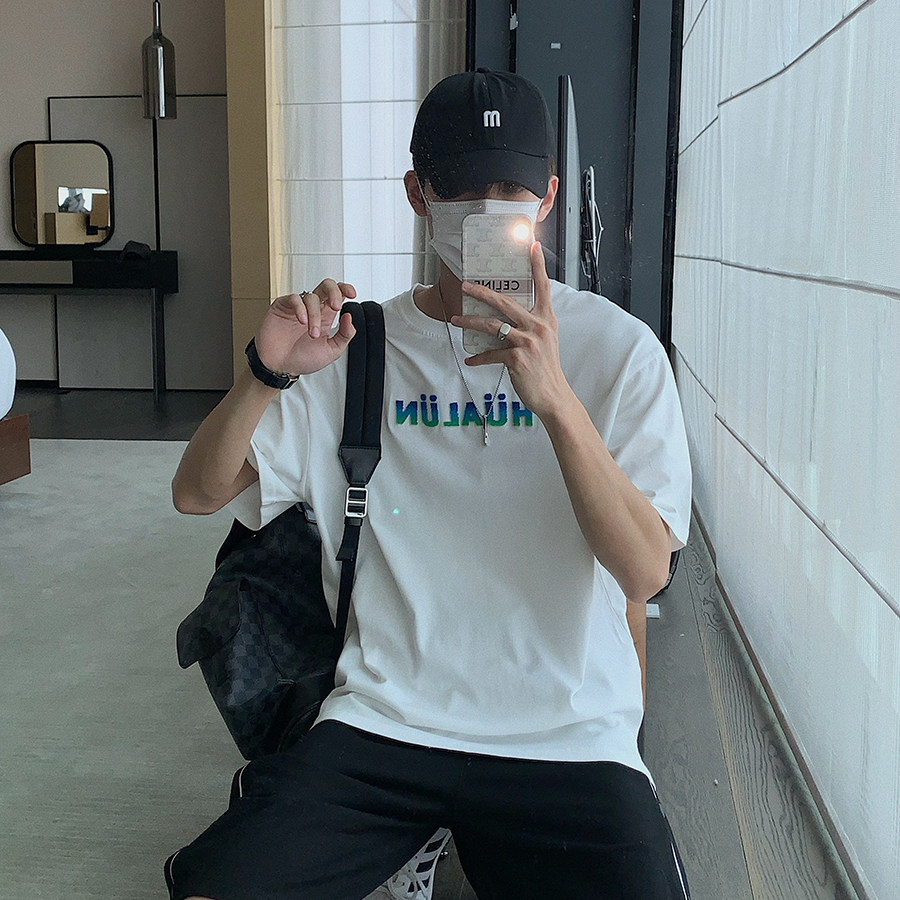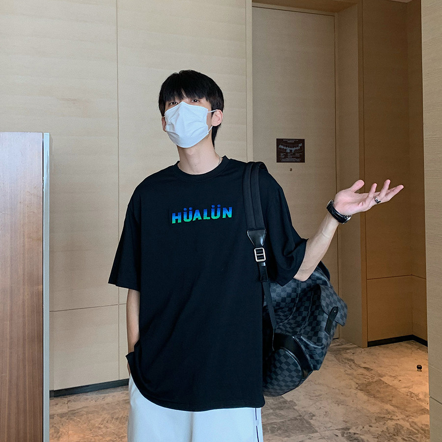 Hualun self-made summer boys short-sleeved couple T-shirt men's loose cotton printed white T-shirt men's tops
