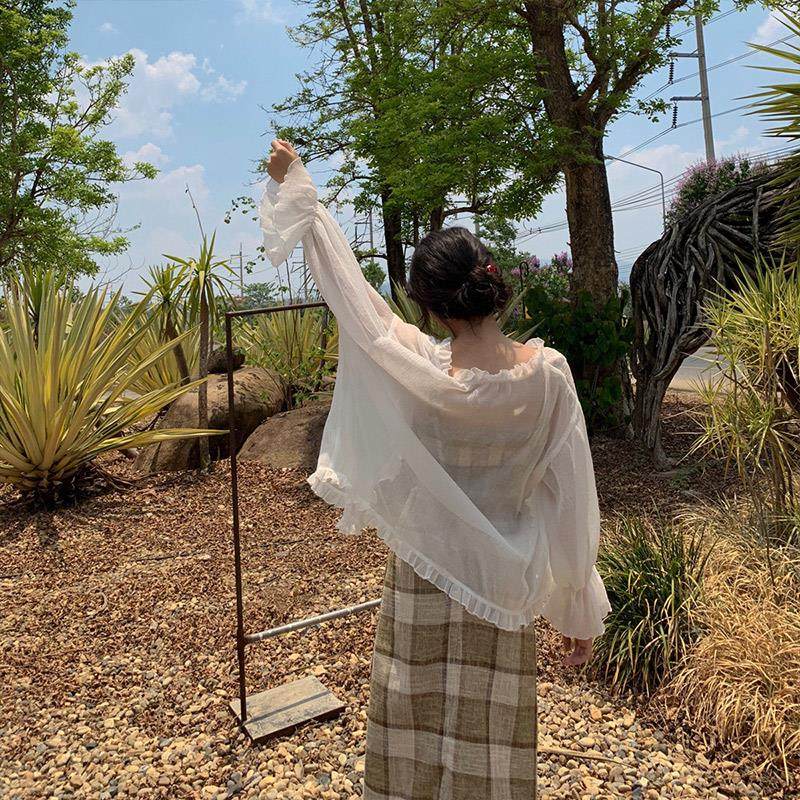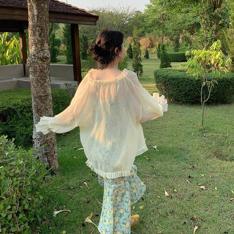 Long sleeve hooded sweatshirt sunscreen woman Summer thin film Fairy Gas Beach Big Size Sunscreen Wear mm Jacket Thin Veil outer lap